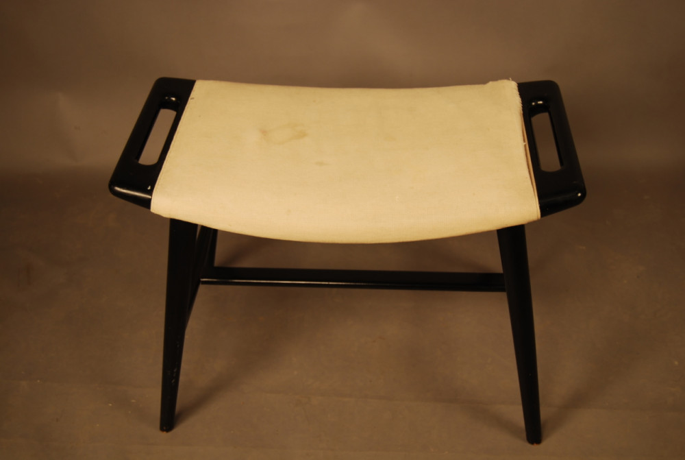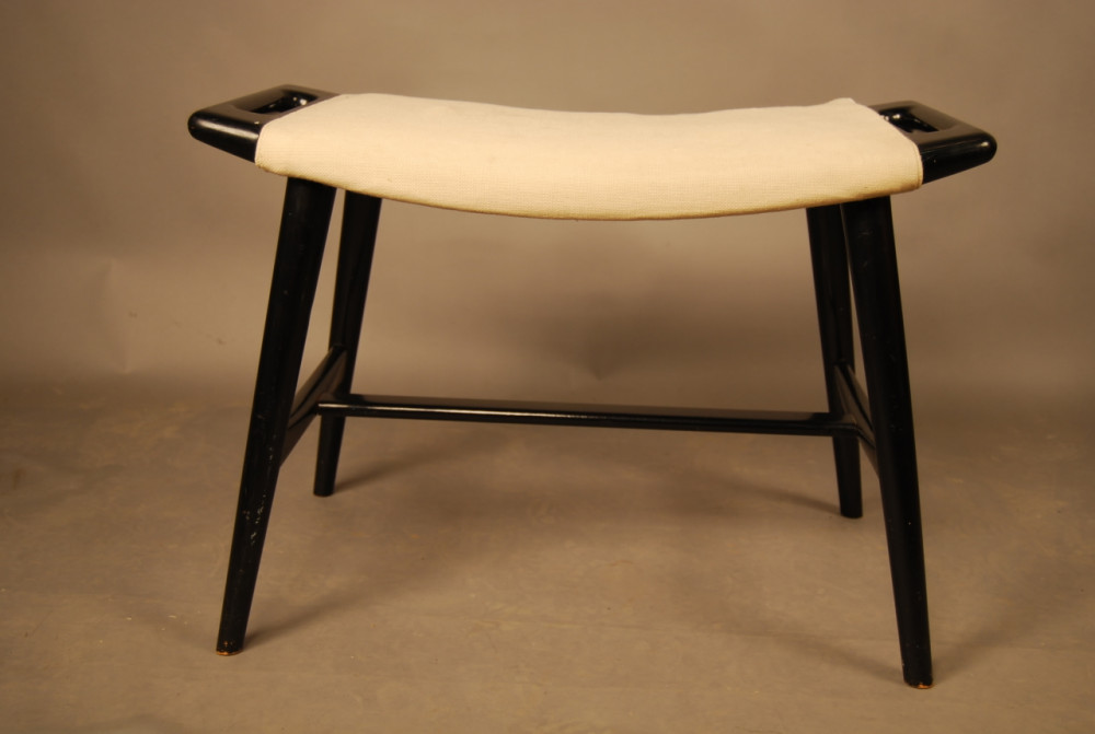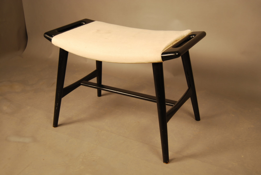 Hans Wegner designed piano stool or footstool for Papa Bear Chair. Original ebonised finish and wool. A rare find!