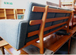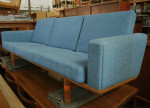 Hans Wegner designed three seat sofa model GE236 . Soap treated oak, wool in very good condition. Original sprung cushions have been rebuilt and new fabric under cushions over sprung wire. Can be used as is or recovered at extra charge.