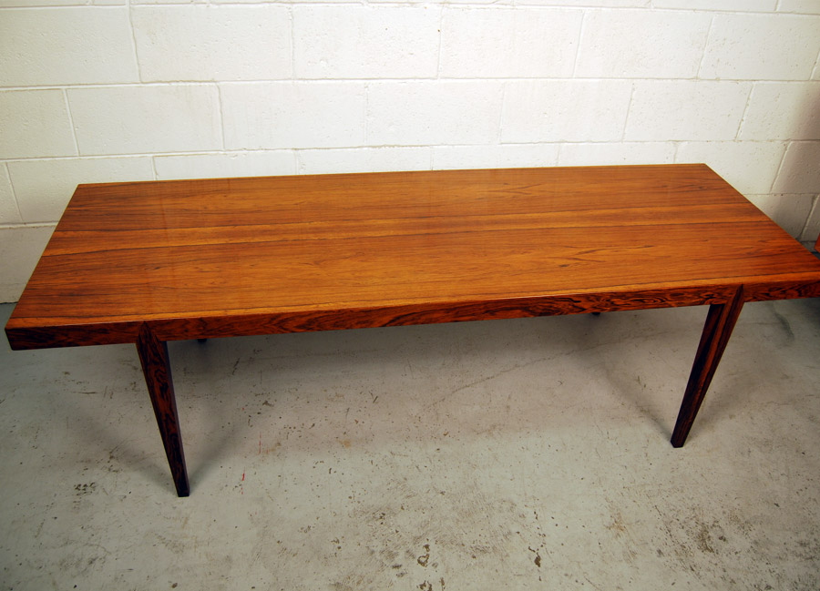 Stunning rosewood coffee table by Haslev, Denmark. A few minor dents to top consistent with age.