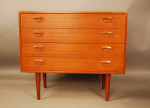 Danish teak chest of four drawers designed by Kai Kristiansen. Lovely condition.