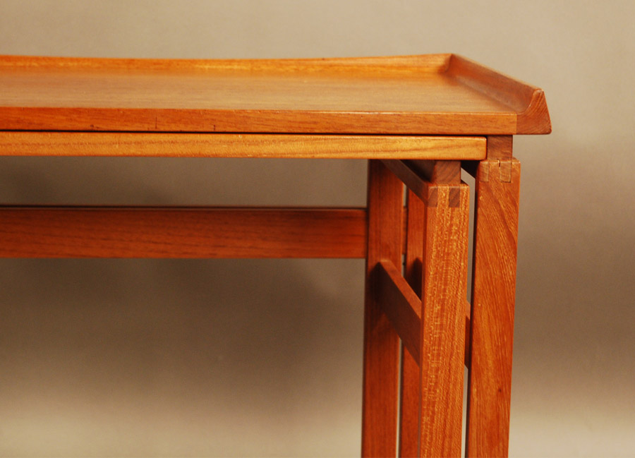 A Danish nest of two teak side tables. Lovely design with detailed joinery. Some marks and scratches as shown.