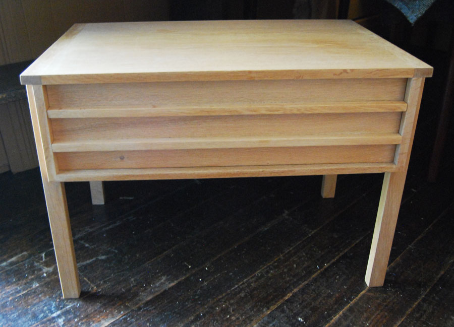 Small Danish oak sewing table with drawers. Soap treated finish.