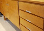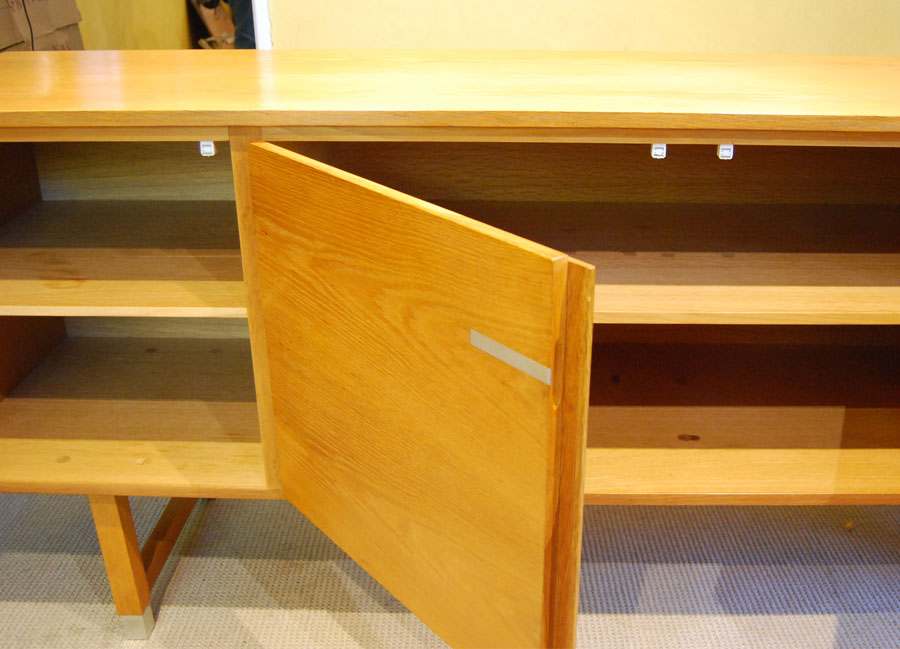 A lovely Danish sideboard by Kai Kristiansen. Three doors and four drawers in oak with aluminium inlay handles and capped feet. Original revived finish, with a few minor marks and patina. A great versatile piece in any vintage or contemporary interior. Adjustable height interior shelves.