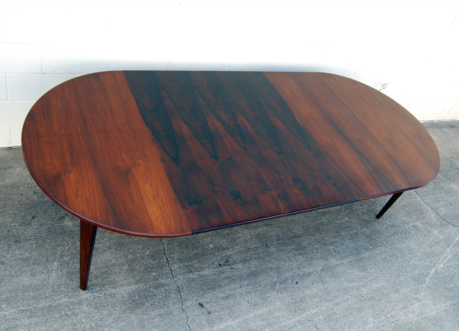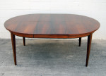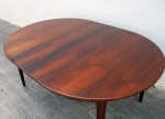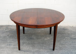 Rosewood extension table by Omann Junior. Excellent condition. 1200mm diameter. 1 leaf with side rails plus an extra 2 leaves with different grain pattern.