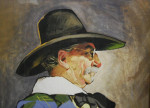 Original painting of a 'Journeyman' , framed and behind glass. A striking artwork.