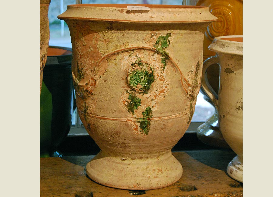 Traditional handmade French Anduze terra cotta garden urn. Aged antique finish. Completely handmade in France by traditional methods, signed and numbered by potter. A stunning addition to any garden, courtyard or interior.