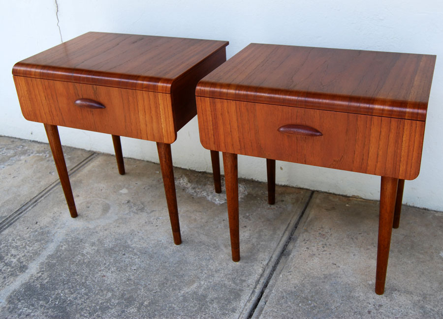 A fabulous pair of Danish teak bedside drawers, very hard to find! Fully restored condition.