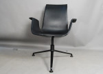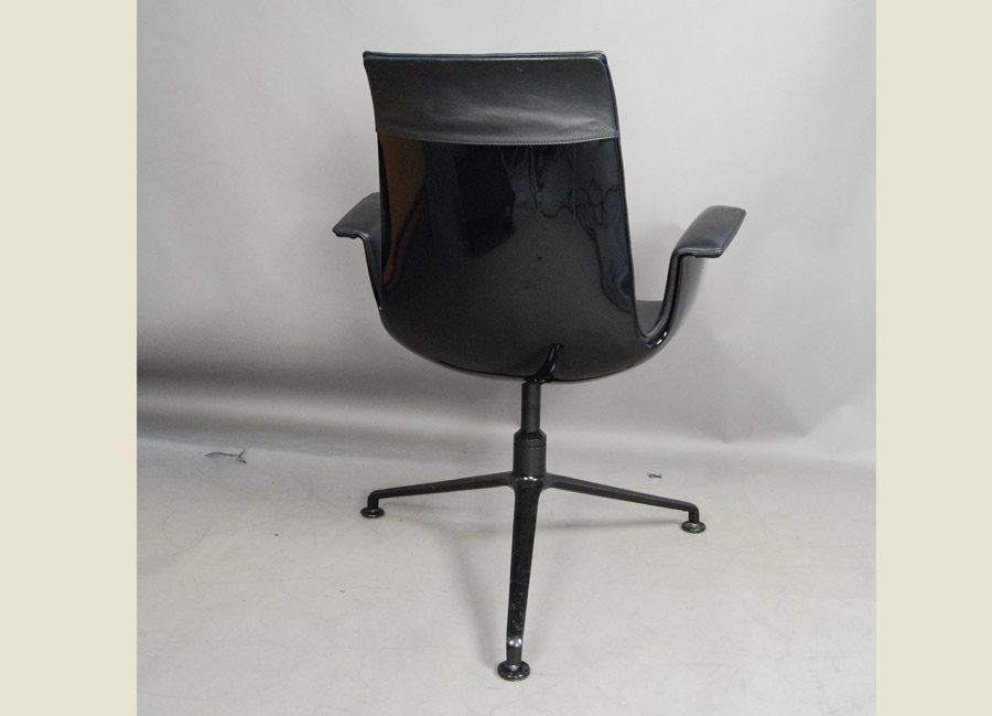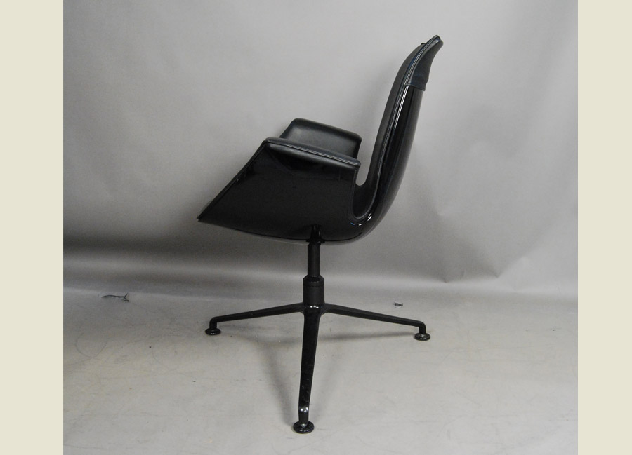 Iconic chair by Preben Fabricus and Jorgen Kastholm, the FK Bucket chair manufactured by Walter Knoll. Model 6728. 3 star aluminium black powder coated base. Outer synthetic shell with leather top upholstery. This is a true design classic. We have two available.