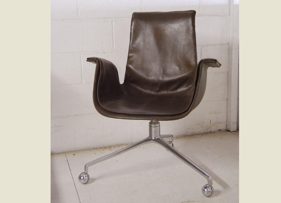 Preben Fabricus 'Tulip Chair'. Original brown leather with patina.