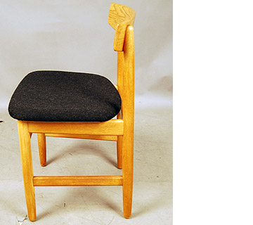 Set of 6 oak dining chairs by Borge Mogensen, reupholstered in Gabriel Savak wool.