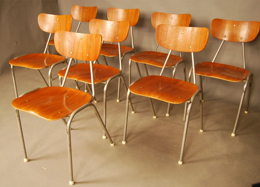 Home > furniture > SOLD - Set of eight teak and steel industrial chairs 28D060
