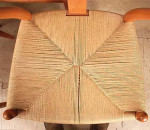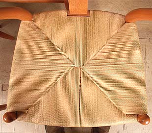 Set of four danish Hans Wegner stained lacquered beech wishbone chairs with paperstriing seats. Excellent condition. Carl Hansen label underneath.