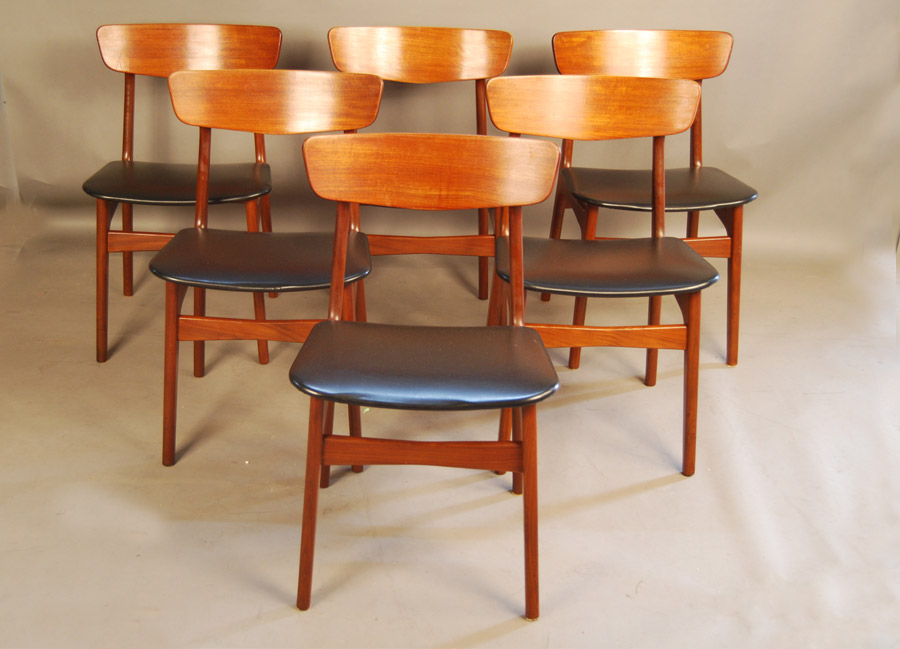 Set of six Danish teak chairs by Findahls Mobelfabrik. Original vinyl seat covers.
