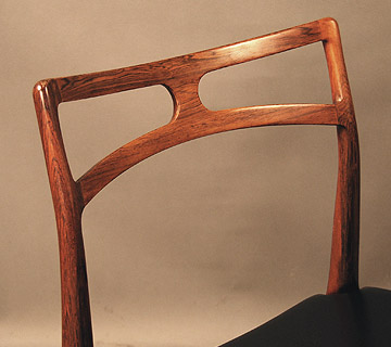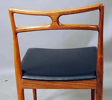Set of six rosewood dining chairs designed by Johannes Andersen in 1961. Produced by Christian Linnbergs Mobelfabrik. Fully refoamed and upholstered in full aniline Italian black leather.