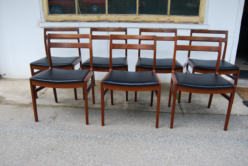 SOLD Set of six or seven Danish dining chairs in new leather 37D018