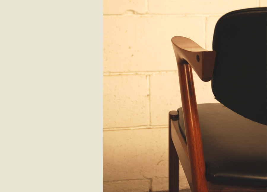 Set of six Danish rosewood Kai Kristiansen dining chairs. Fully reupholstered in new black Italian aniline leather.