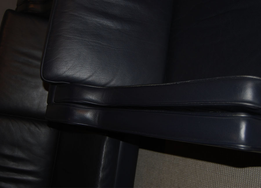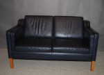 A lovely black leather two seat Stouby sofa. Some minor wear to piping on arms.