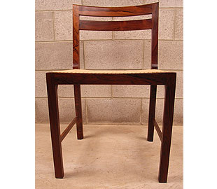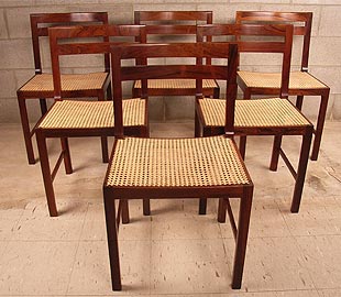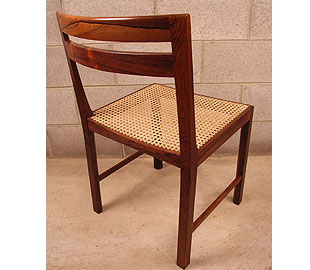 Designed by Bernt Petersen, manufactured by Worts Mobelsnedkeri | C.N. Jørgensens Møbelsnedkeri. Extremely rare set of six Danish rosewood and cane dining chairs in excellent condition. . Stunning high quality set of chairs.