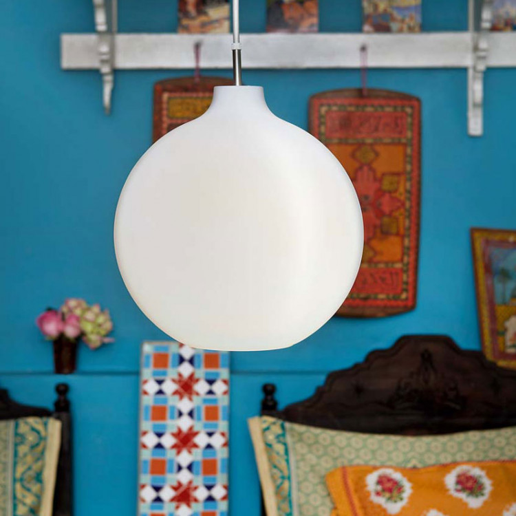 Mouth-blown glass pendant opal white. Available in 300mm, 350mm , 400mm . Please enquire for lead times and prices.
