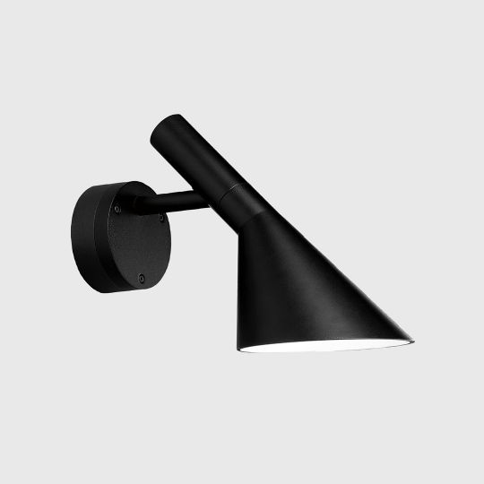 AJ Wall light designed by Arne Jacobsen, available in black, graphite grey, white, sand, light blue, petroleum, red and light green. Please enquire for lead times and pricing.