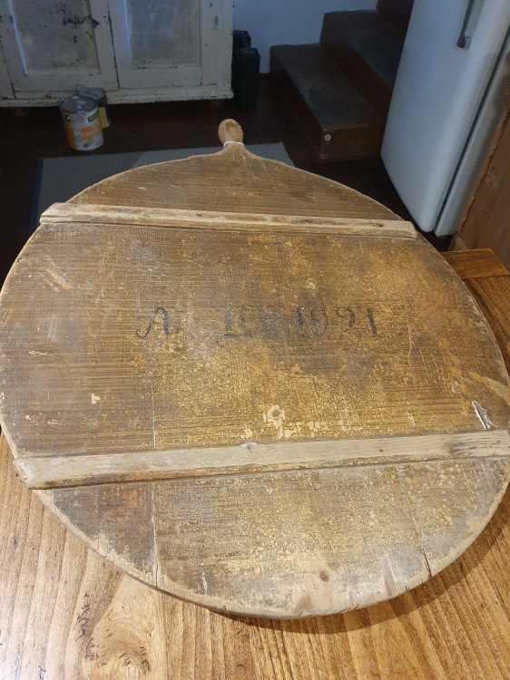 Antique wooden dough board with original painted finish to one side. Lovely patina.