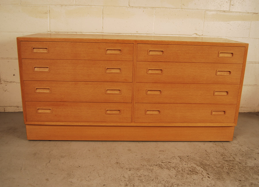 Danish oak bank of eight drawers by A.L. Johansen & Son for Hundevad. Very good condition.